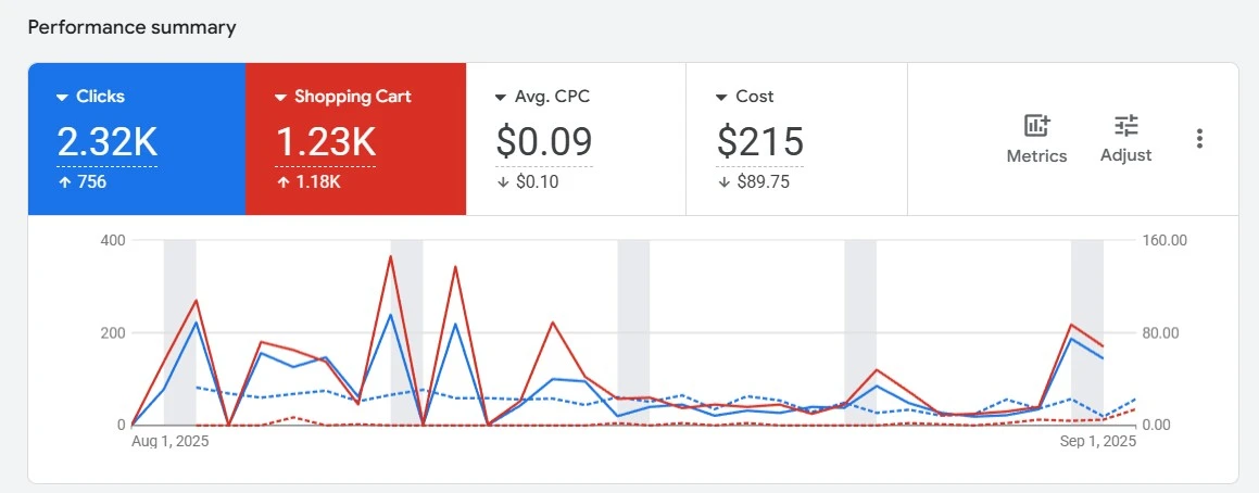 We also overhauled Nova’s homepage by analysing their Google Ads data and identifying the products customers were actively searching for. We moved those products to the front of the homepage to remove friction and make it easier for buyers to find and purchase what they wanted. After restructuring key sections and improving clarity, Nova’s conversion rate increased from2.72 percent to 3.16 percent. We also optimised their Google Ads account by refining keywords, improving ad relevance, and tightening bidding strategy. This delivered stronger click growth, higher shopping cart activity, and far more efficient spend.