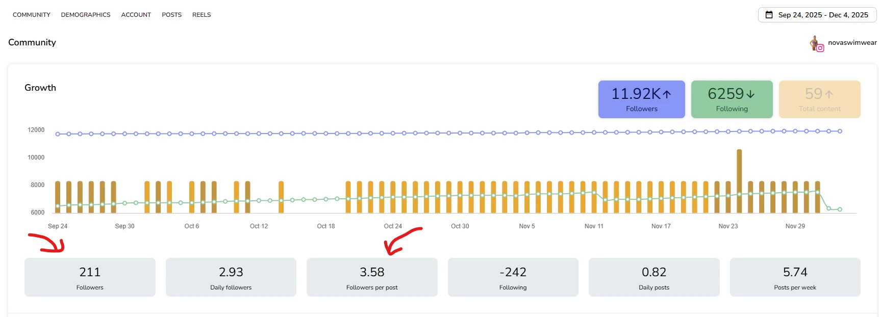 Instagram opened up for growth again. The account began attracting new, high intent users with an average of 3.58 potential customers per post, delivering 211 potential customers within ten weeks.